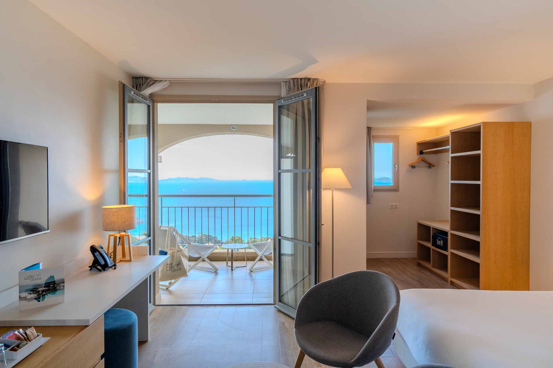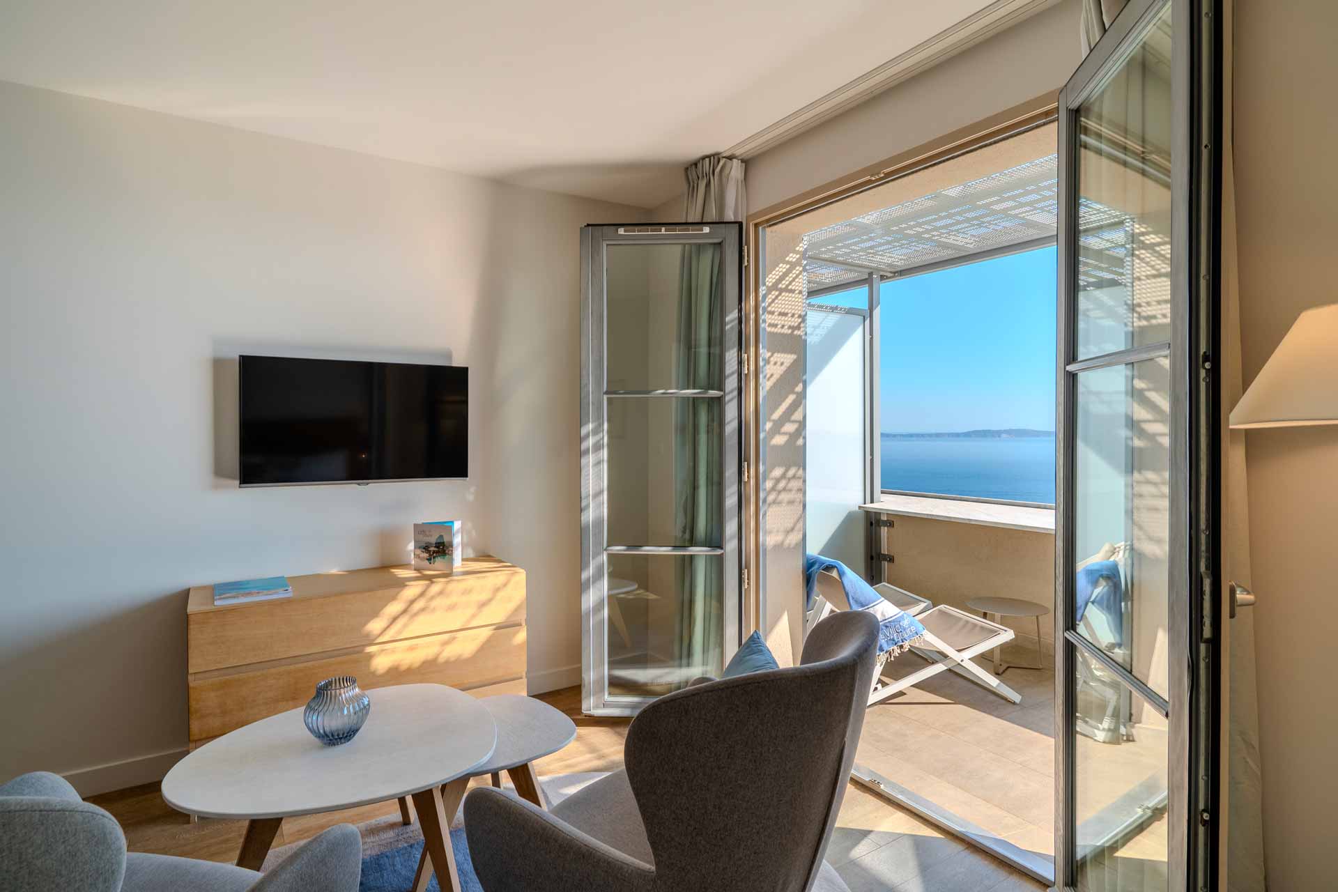 Spacieuse et vue mer, la Chambre Supérieure doit son charme à un mobilier contemporain. Elle est aménagée avec soin, offrant un balcon-terrasse privatif aménagé en rez-de-chaussée ou en étage. La chambre Supérieure vue mer est légèrement plus spacieuse que la chambre Supérieure rez-de-chaussée surplombant la piscine.